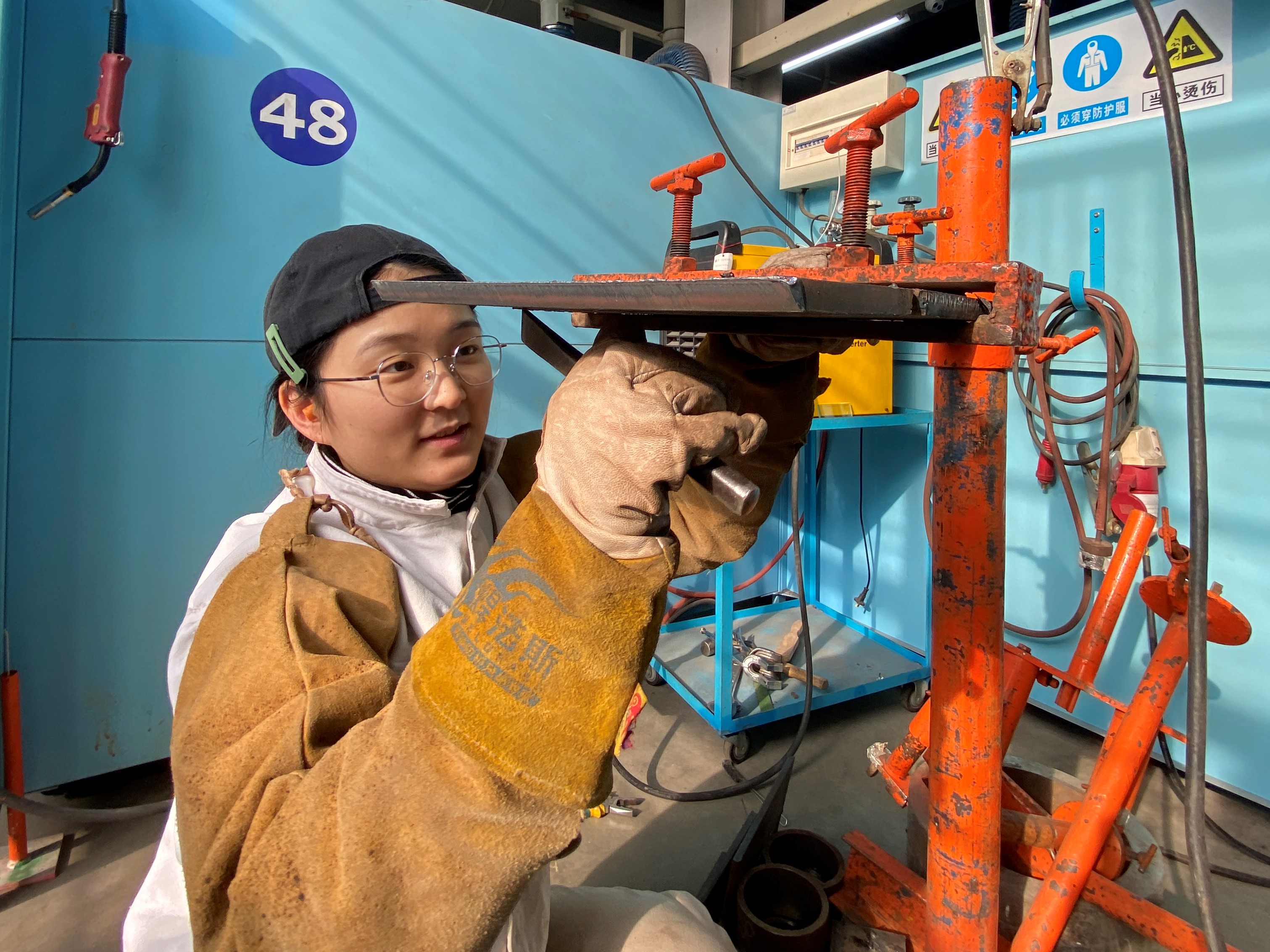 “焊接這個專業(yè)是父母替我選的,我可以說是誤打誤撞走上焊接之路。”夏以琳笑笑說,剛?cè)胄5囊荒昀?,理論知識的學(xué)習(xí)很枯燥,讓她一時對焊接了無興趣。